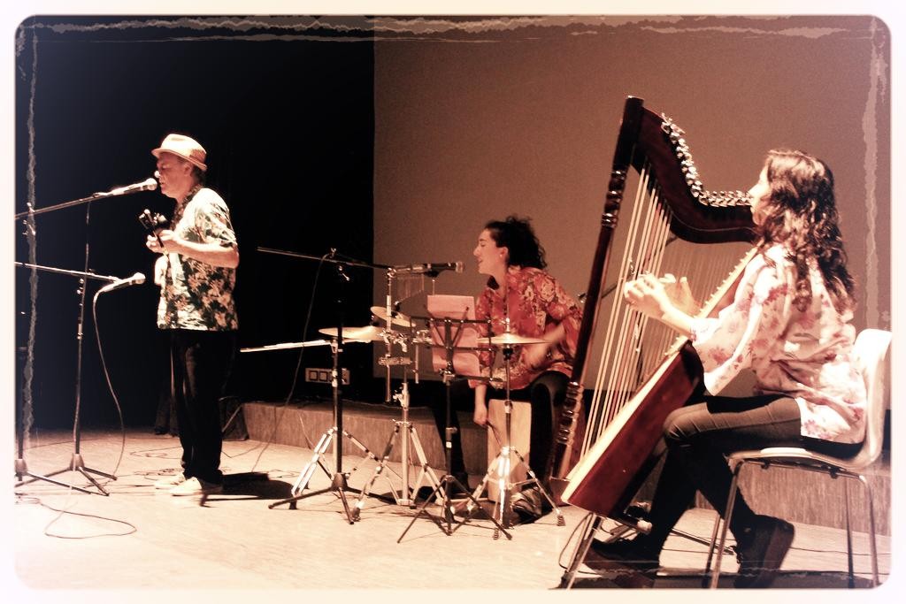 R. Sánchez: No, hemos tenido un koto o taikos, pero no. La banda se completa con violín, teclado y guitarra, aparte del sanshin, la percusión y el arpa.