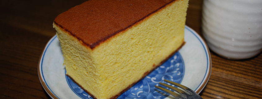 Es un bizcochuelo tradicional japonés, muy liviano ya que no lleva manteca o materia grasa alguna. La característica del “kasuterá” es la forma rectangular de la porción.