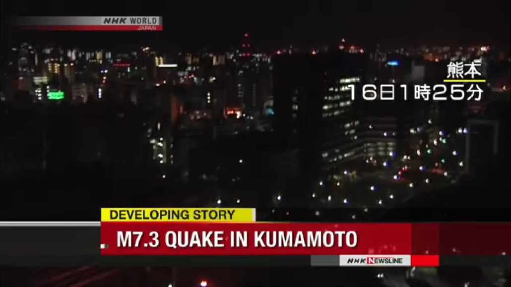 Foto de portada: La NHK comunicó la noticia del nuevo terremoto de 7,3 grados en Kumamoto que ocurrió el día de hoy.