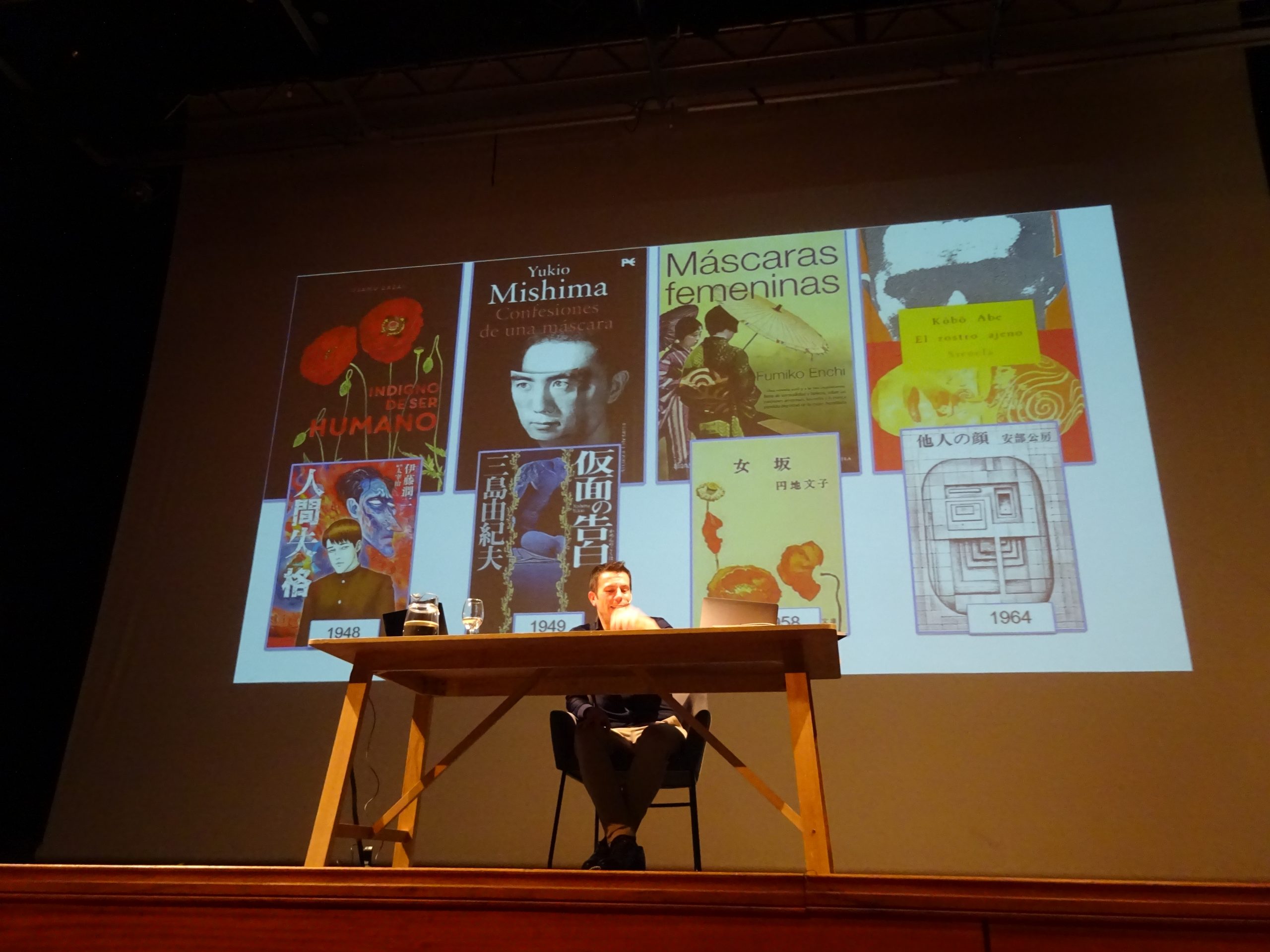 El Dr. Chiappe presentó cuatro novelas: “Indigno de ser humano” (1948) de Dazai Osamu, “Confesiones de una máscara” (1949) de Mishima Yukio, “Máscaras femeninas” (1958) de Enchi Fumiko, “El rostro ajeno” (1964) de Abe Kōbō. Todos son obras de la posguerra, algunas de corte autobiográfico o novela del yo y que tuvieron influencias las “mascaras”.