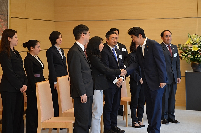 Nuestra mayor sorpresa durante este programa fue la confirmación de la audiencia de cortesía con el primer ministro Shinzo Abe. Él nos concedió 25 minutos dentro de su apretada agenda incluyendo la sesión de fotos con cada uno de nosotros.