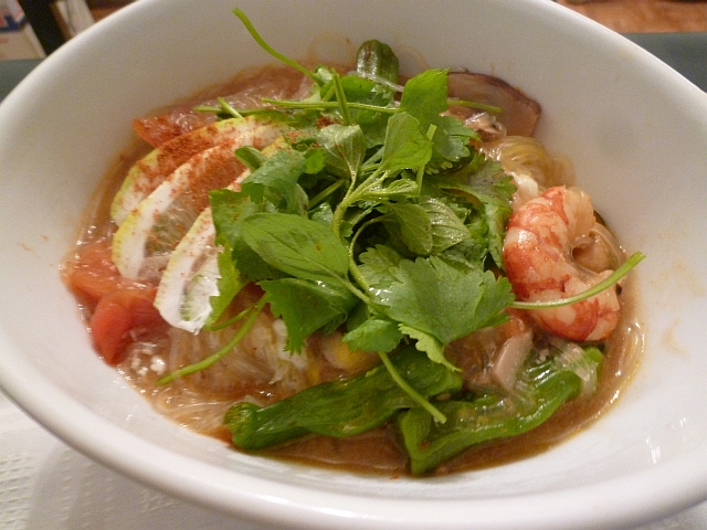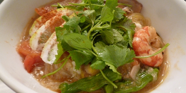 - Cuando empieza hervir el caldo, agregar el fideo harusame, y bajar el fuego a medio bajito.