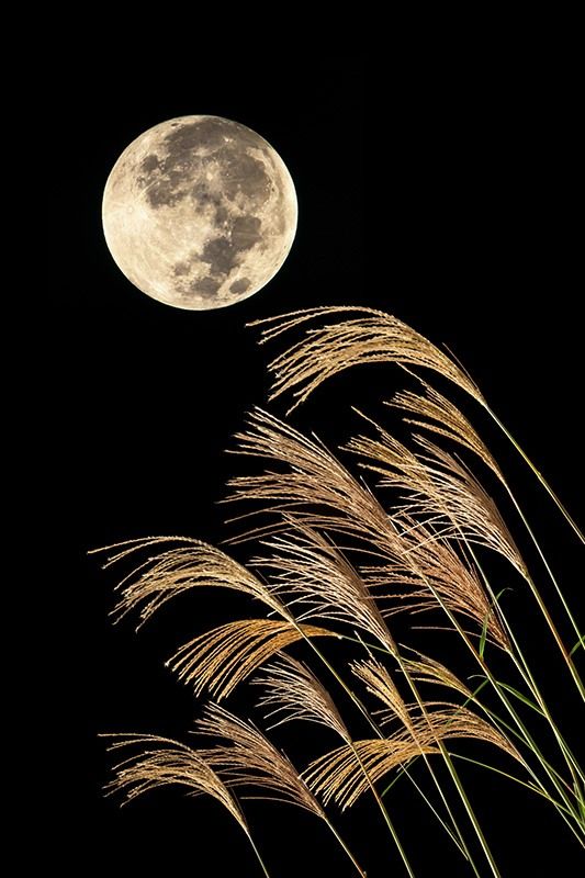 El 6 de octubre, los japoneses colocarán tsukimi dango (月見団子), en bandejas de laca negra con bordes bermellón y dibujos en dorado opaco. Una, dos, tres, cuatro bolas de arroz: una pirámide. Esta ofrenda a la otoñal luna más bella es, a su vez, un agradecimiento a la cosecha. La pirámide de esferas dulces se colocará en un lugar espacioso, quizás, sobre las tablas de madera de un corredor exterior, para ser bañada por la luz de la luna. Un florero con susuki (ススキ), cual penachos marfil, ondearán con la brisa: un lienzo otoñal.