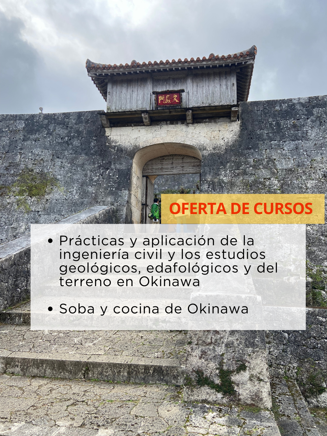 Objetivos: Desarrollar talento capaz de difundir la cocina de Okinawa como marca en Latinoamérica, mediante el aprendizaje de la historia, las técnicas culinarias, y la gestión y marketing del soba de Okinawa. Tras el regreso a casa, podrán aplicar estos conocimientos en eventos y publicaciones en redes sociales, y desarrollar técnicas para utilizar ingredientes locales.