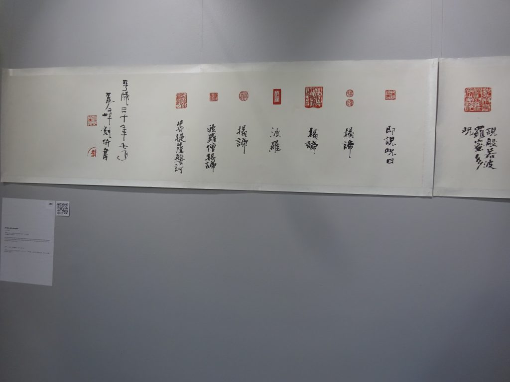 El historiador e investigador mostró dos obras de la exhibición de Hamano sensei y procedió a su análisis. El calígrafo/artista tomó algunas poemas del Man’yōshū, se inspiró y lo plasmó en tinta.