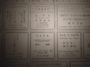 El 1 de septiembre de 1951, el periódico Akoku Nippo, que dejó de publicarse en los 90, destacaba la publicidad de los negocios japoneses. En el centro se encontraba el Café Tulipán, propiedad del abuelo de Ana Serei, del Kawaii Club Café, cerca del Mercado de Flores que se situó en Retiro.